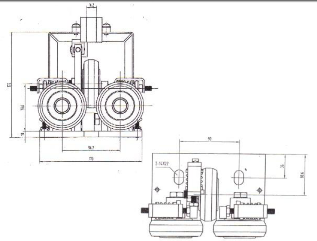 3. Elastic sliding guide shoes are further divided into spring sliding guide shoes (suitable for elevators with rated speed less than 1.7M/S) and rubber spring sliding guide shoes (suitable for medium and high-speed elevators).